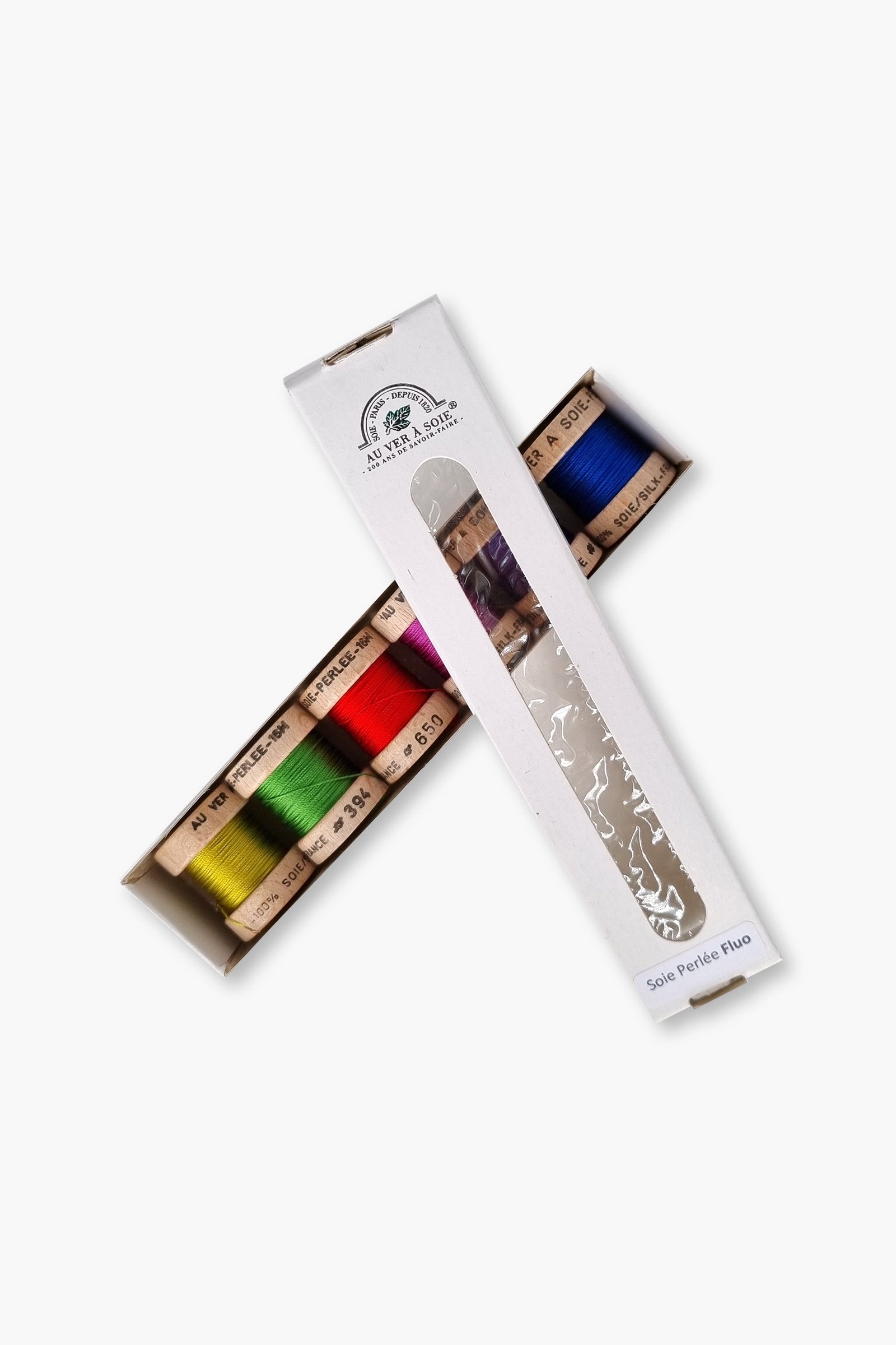 6er-Set Au Ver à Soie Soie Perlée Fluo – 100% Seide – 16m Spulen – von Au Ver à Soie
