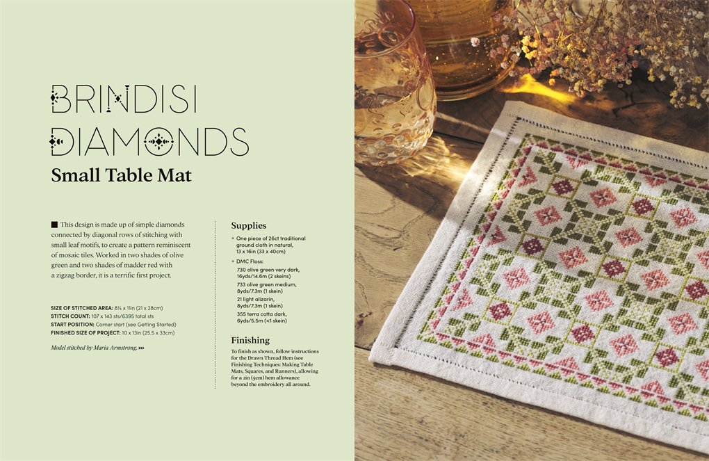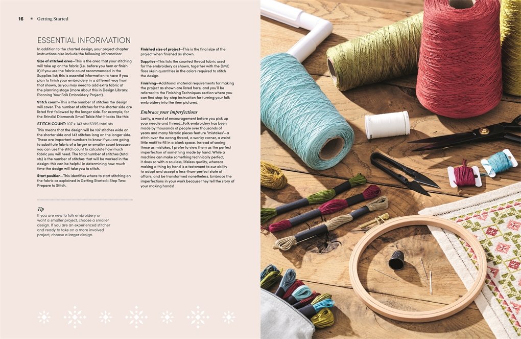 Projekte: Das Buch enthält eine Reihe von klassischen Volksstickereiprojekten, darunter Tischläufer, Tischquadrate und Kissenbezüge. Eine Musterbibliothek mit über 175 Karten bietet Inspiration und Anleitung, während Anleitungen zeigen, wie man historische Layouts anpasst, mit Motivwiederholungen arbeitet und eigene originelle Designs für moderne Innenräume erstellt.