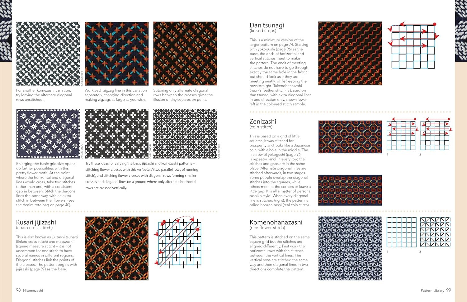 Projekte: Das Buch enthält eine Vielzahl von Projekten, darunter gerahmte Mustertücher, Untersetzer, Grußkarten, Tischsets, Musterkissen, Tragetaschen, traditionelle Noren-Türbehänge, Kordelzugtaschen, Zabuton-Bodenkissen und Tischläufer. Jedes Projekt zeigt, wie Sashiko sowohl für dekorative als auch für funktionale Textilien verwendet werden kann.