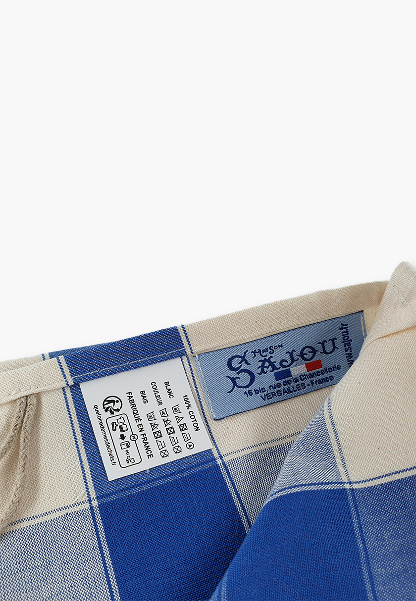 This elegant 100% cotton kitchen towel by Maison Sajou features a 6.5 count Aida cloth center, ideal for cross stitch and other counted embroidery techniques. The towel is ecru with delicate blue stripes, and comes with a small hanging loop and the signature Maison Sajou label. Measuring 52 × 72 cm, the Aida cloth center spans 17.3 × 17.8 cm (112 × 116 stitches), offering the perfect space for embroidery projects. Made in France, this towel combines practicality with refined craftsmanship. To ensure the best results, soak the tea towel overnight before the first wash to remove the starch, which makes ironing easier and prevents stubborn creases.