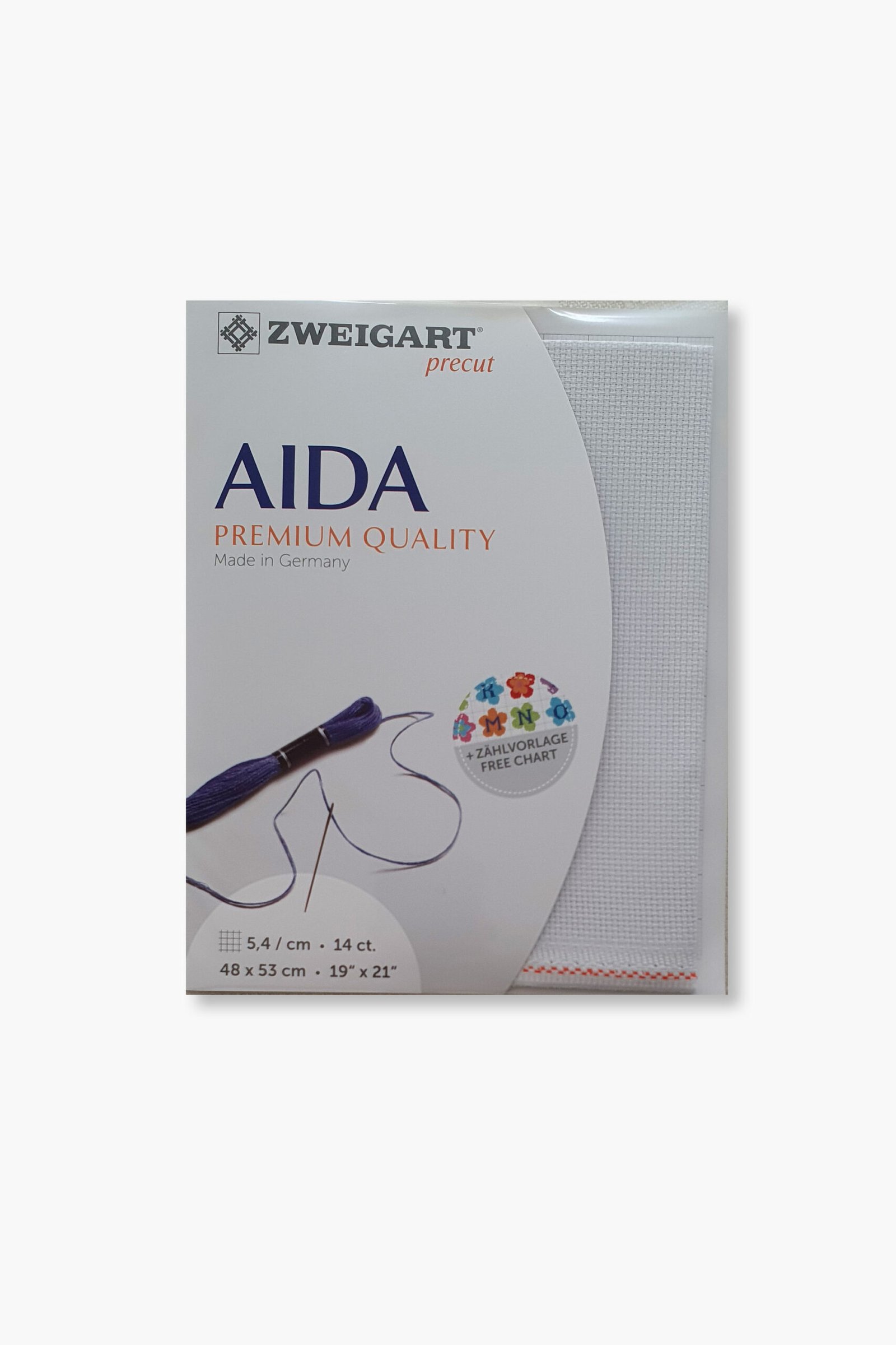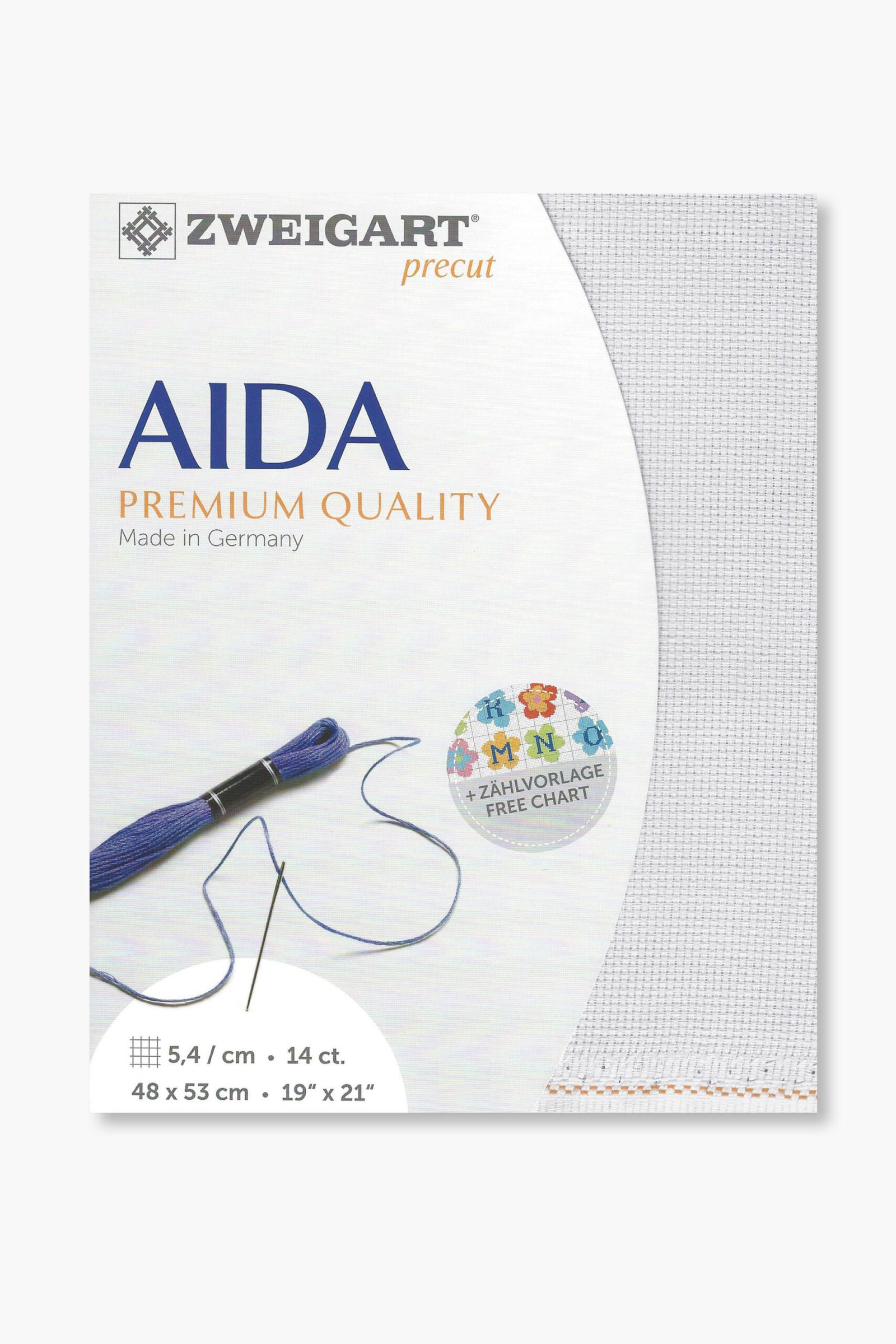 Prodotto da Zweigart, storica azienda tessile tedesca riconosciuta a livello internazionale per la qualità superiore dei suoi tessuti da ricamo. Tutti i tessuti Aida Zweigart sono prodotti esclusivamente in Germania, utilizzando materie prime accuratamente selezionate e processi produttivi controllati.