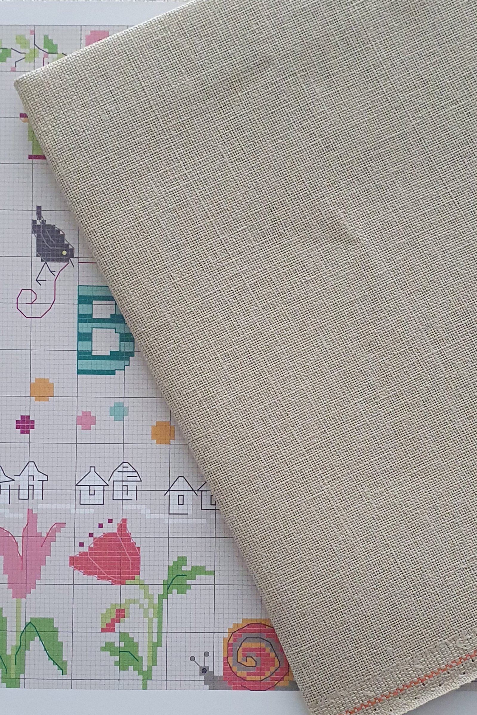 Realizzato al 100% in lino, presenta una trama leggermente più aperta e regolare con 32 count (12,6 fili/cm), che offre un’eccellente visibilità dei punti mantenendo un aspetto pulito ed equilibrato. Questo lo rende particolarmente adatto per il punto croce, il ricamo a punto contato e le tecniche di ricamo tradizionali.