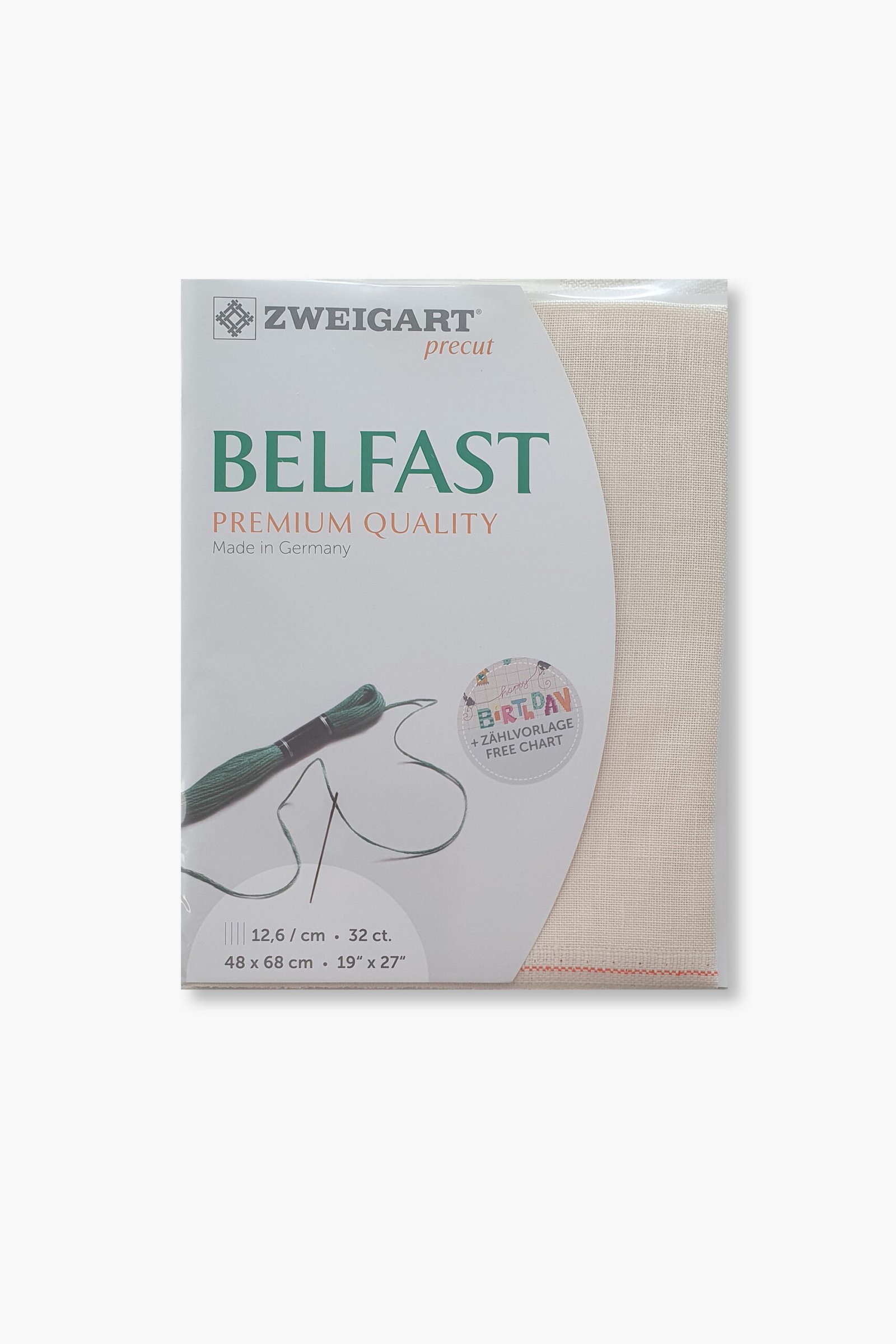 Ogni pezzo è pretagliato a misura (48 × 68 cm) e confezionato singolarmente. La gamma Belfast è disponibile in una selezione accuratamente scelta di colori, pensati per completare sia i disegni di ricamo classici che quelli contemporanei.