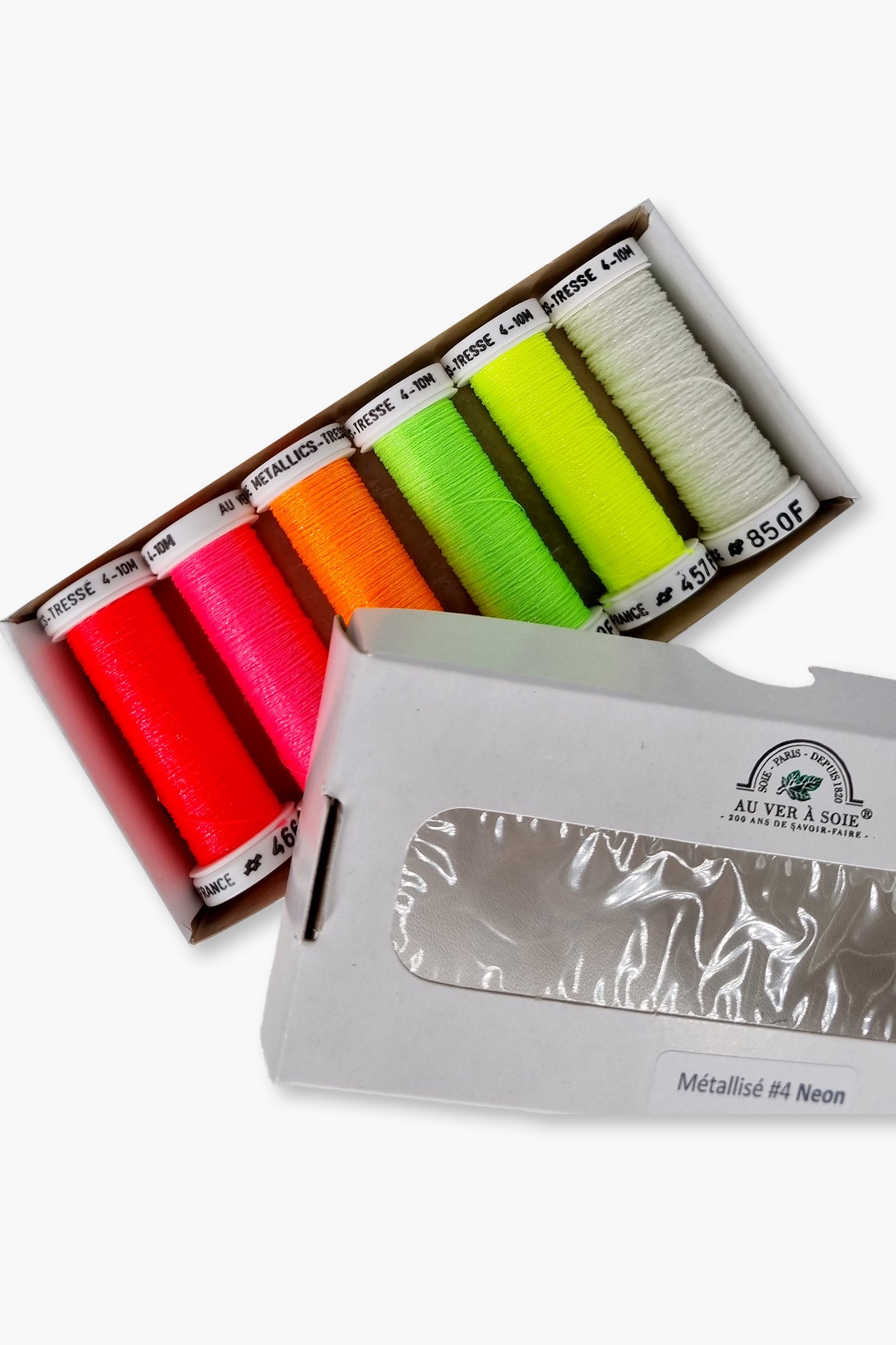 Au Ver à Soie Au Sextant Tressé 4 Metallic Thread “Neon” – Pack of 6 Spools – 10 m each – by Au Ver à Soie