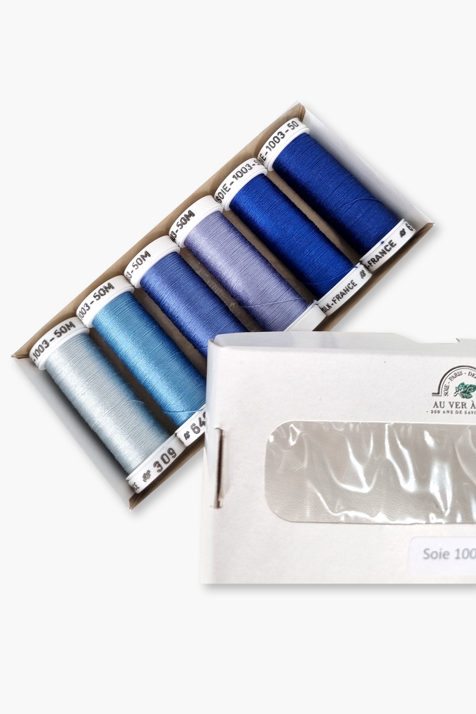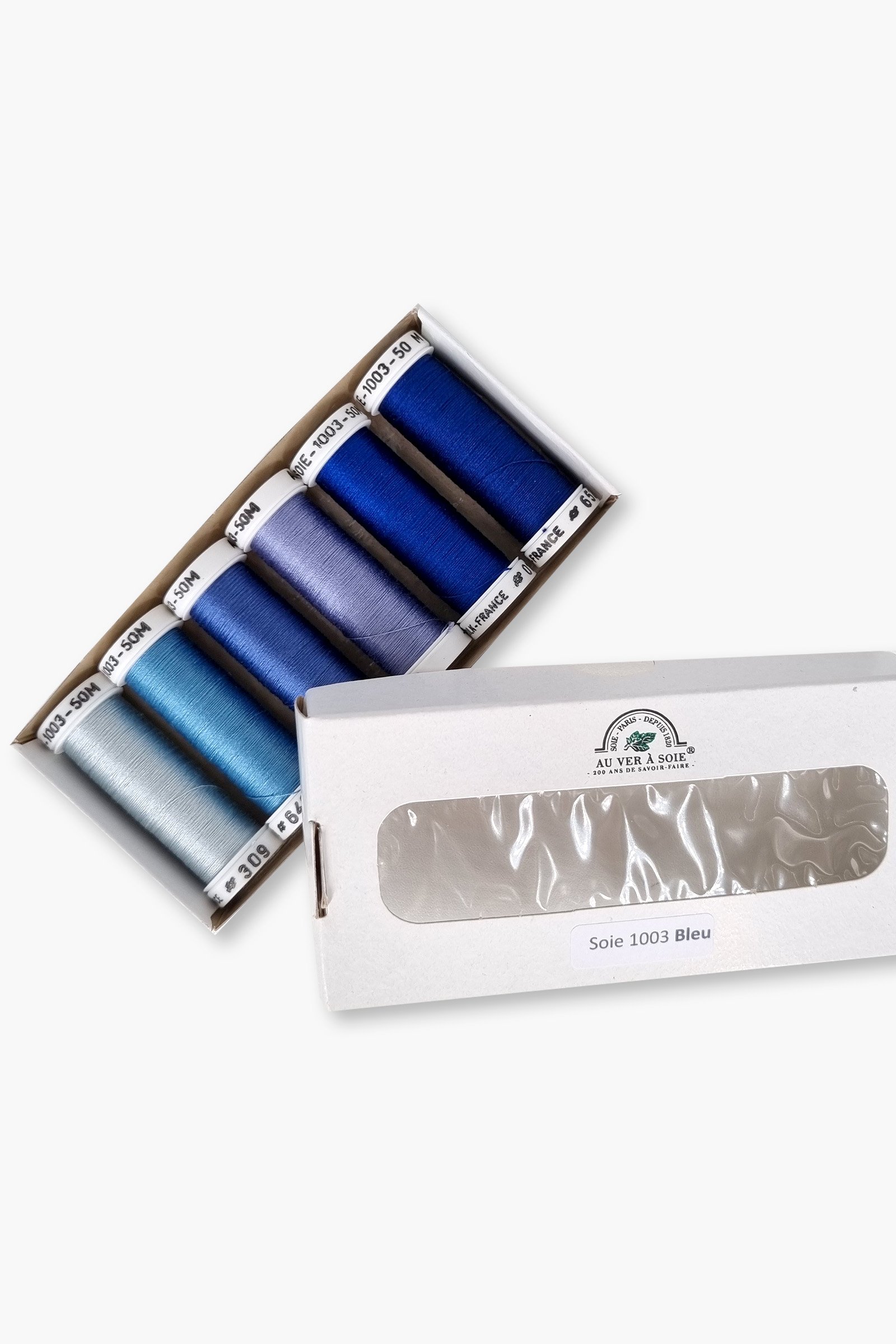 Au Ver à Soie Soie 1003 “Bleu” – Pack of 6 Spools – 100% Silk – by Au Ver à Soie