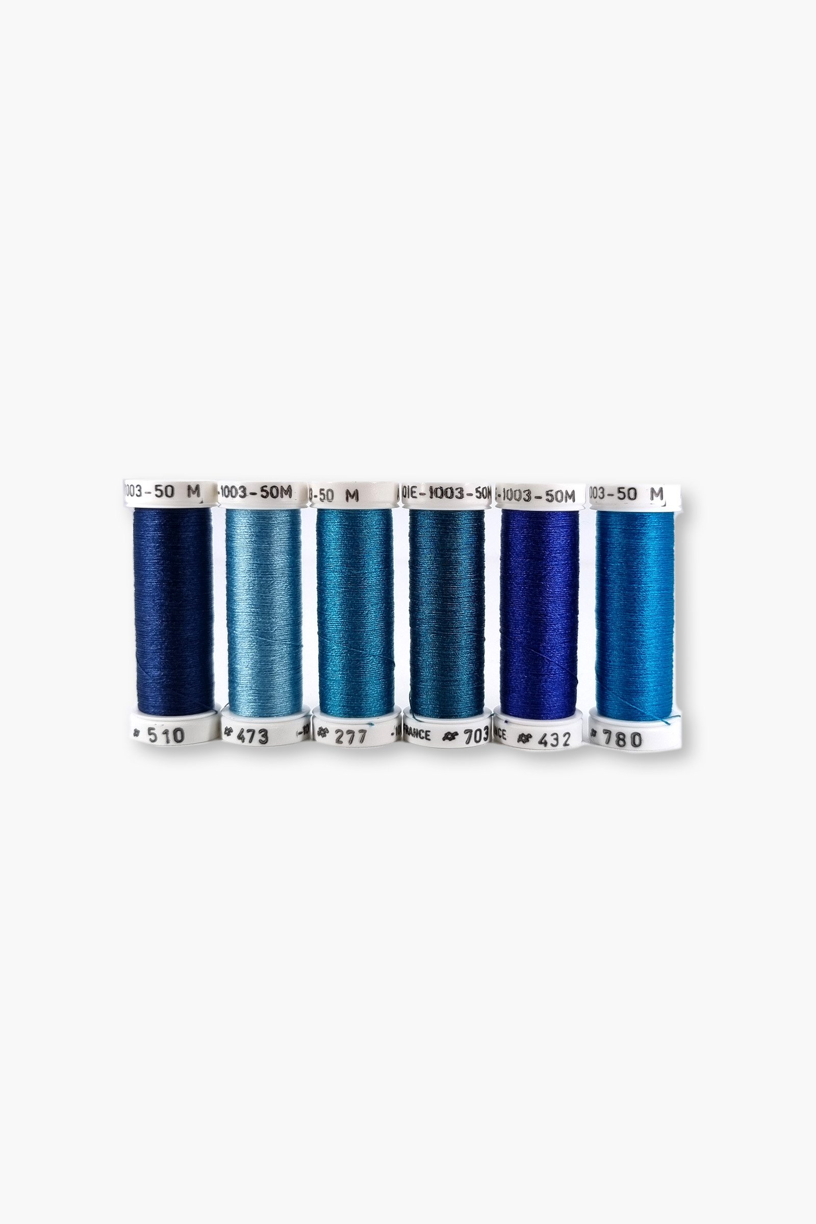 The “Marine” pack includes 6 spools in coordinated blue and navy shades, designed for rich tonal variations and depth. Ideal for expressive embroidery, shading, and decorative detailing. Each spool contains 50 meters of thread.