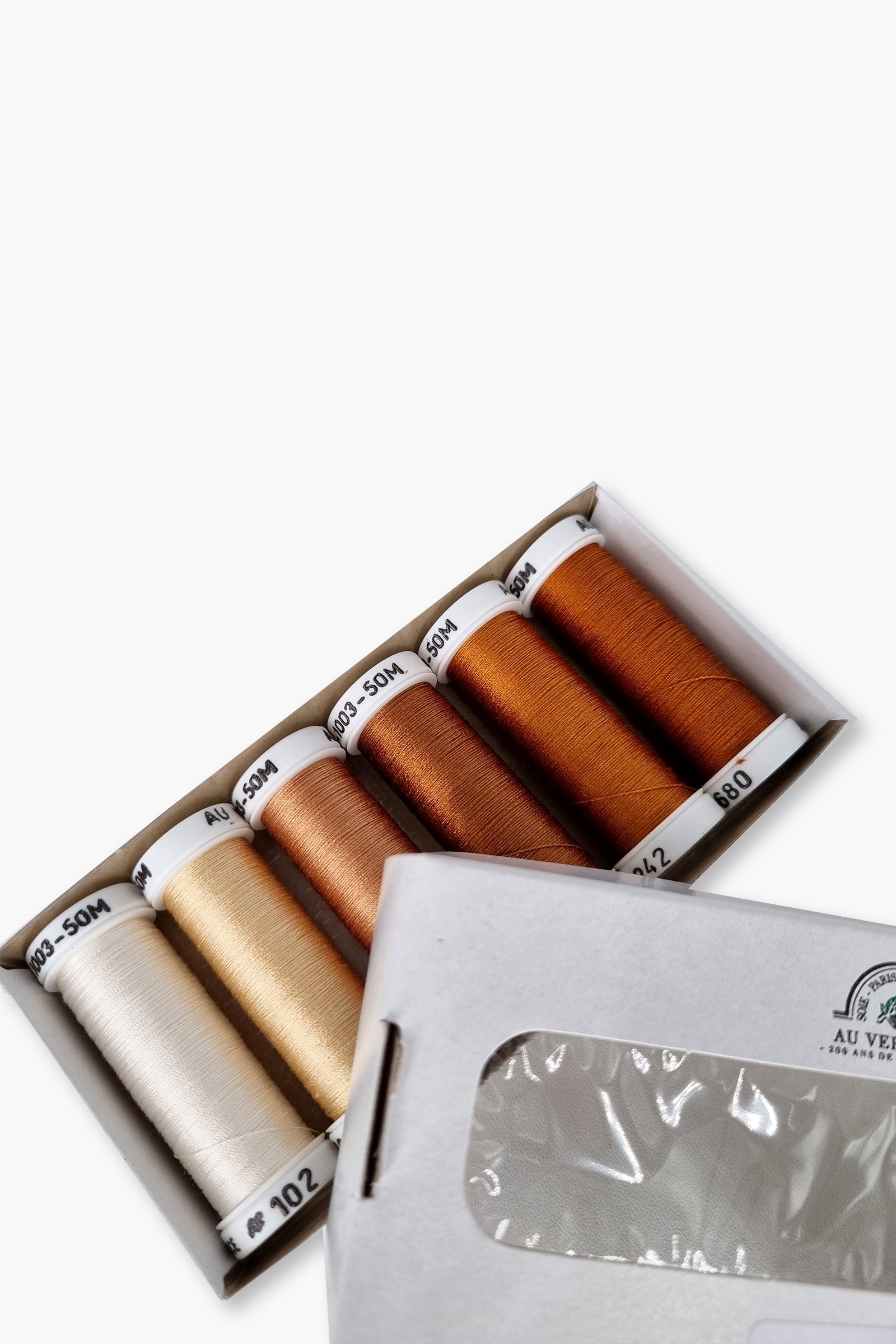 The “Marron” pack includes 6 spools in coordinated brown shades, designed for warm tonal variations and natural depth. Ideal for earthy, expressive embroidery, shading, and fine decorative detailing. Each spool contains 50 meters of thread.