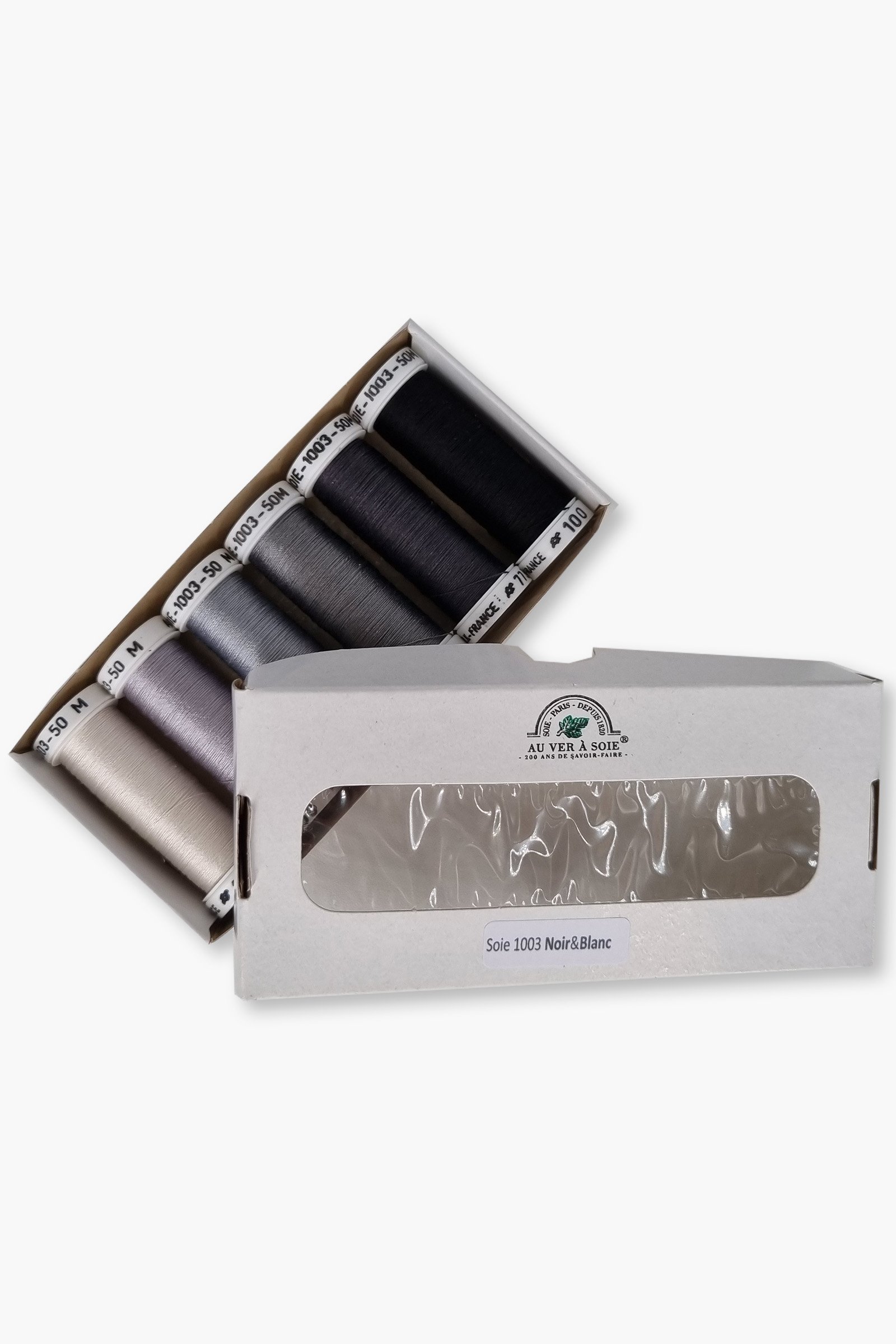 Au Ver à Soie Soie 1003 “Noir & Blanc” – Pack of 6 Spools – 100% Silk – by Au Ver à Soie
