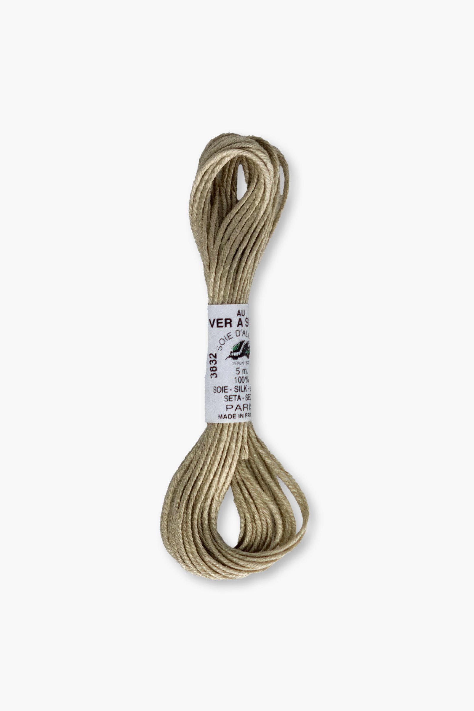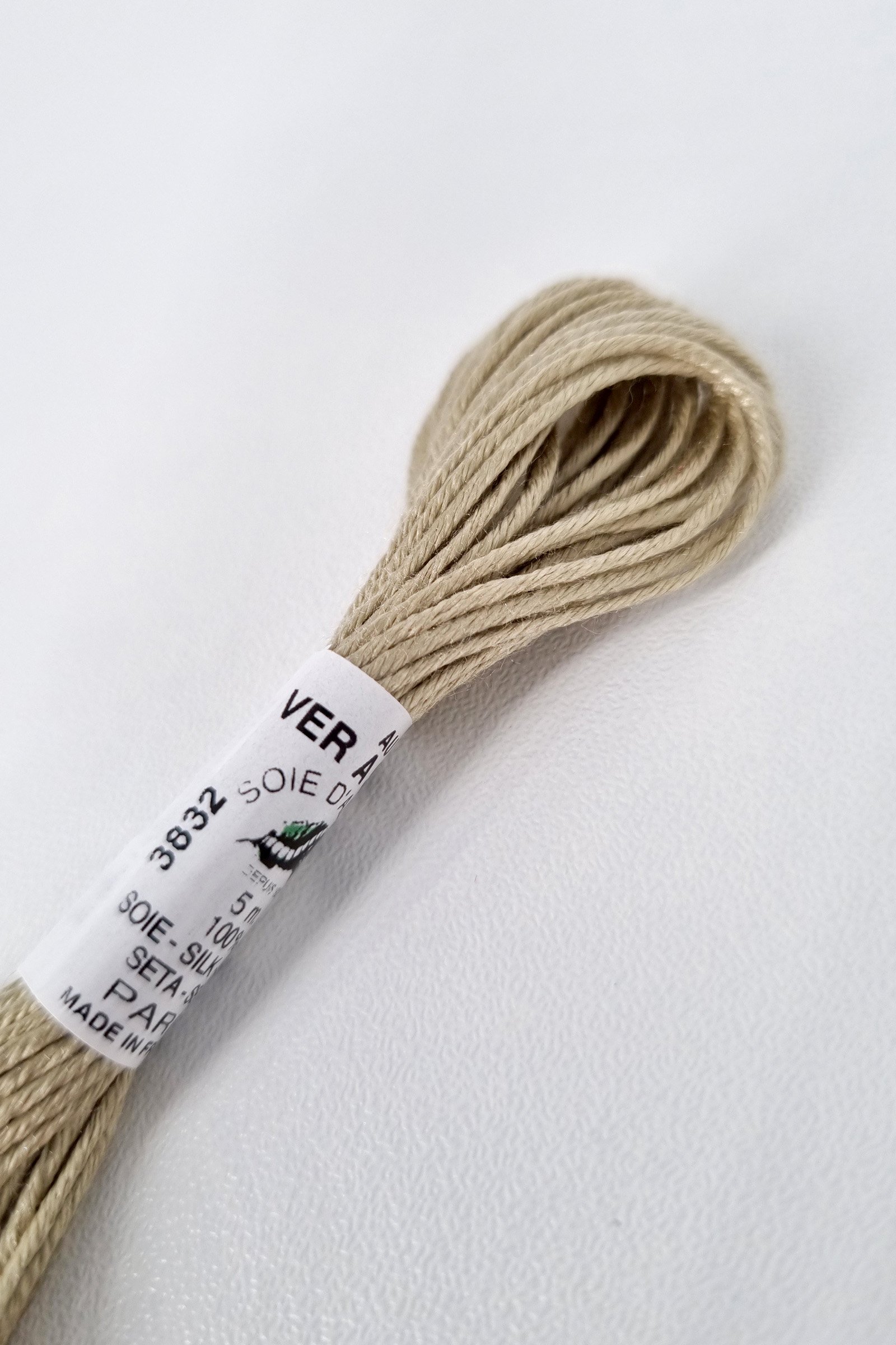 This skein contains 5 meters of silk thread in the solid shade “3832”, ideal for precise color work and detailed embroidery.