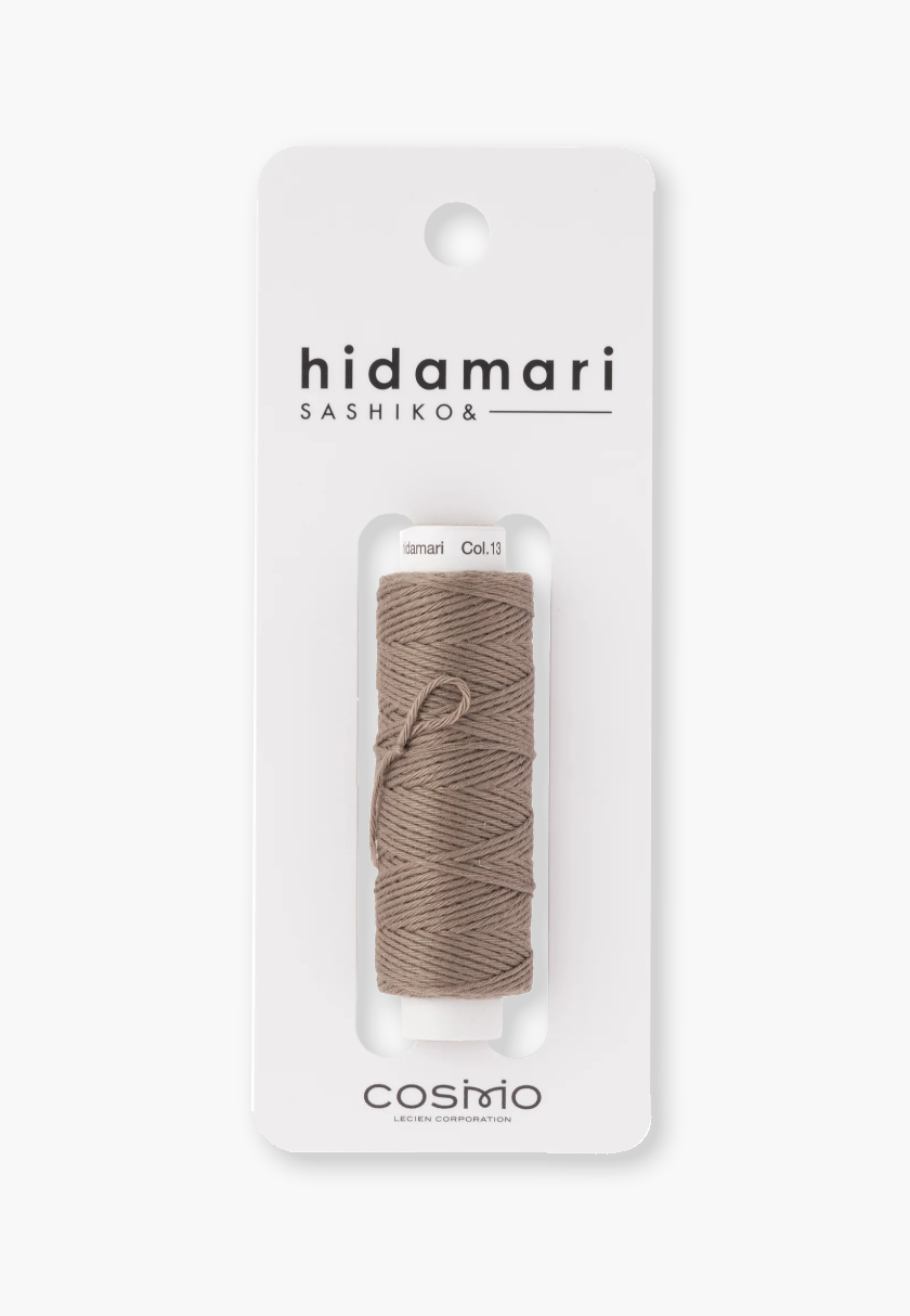 Premium Hidamari 88 sashiko thread made from 100% Japanese cotton. This 6-ply solid (single-color) thread is medium-weight, durable, and smooth, designed to glide effortlessly through fabric without fraying. The “Pale Taupe” solid shade offers rich, even color, making it ideal for traditional sashiko stitching, visible mending, hand embroidery, crochet, quilting, and decorative textile work. Suitable for both beginners and experienced stitchers, this Japanese sashiko thread offers excellent strength and versatility. With a thickness comparable to Perle Cotton size 8, it’s perfect for geometric sashiko patterns, decorative details on clothing or accessories, boro-inspired patches, or creative embellishments such as tassels, fringes, and pompoms.