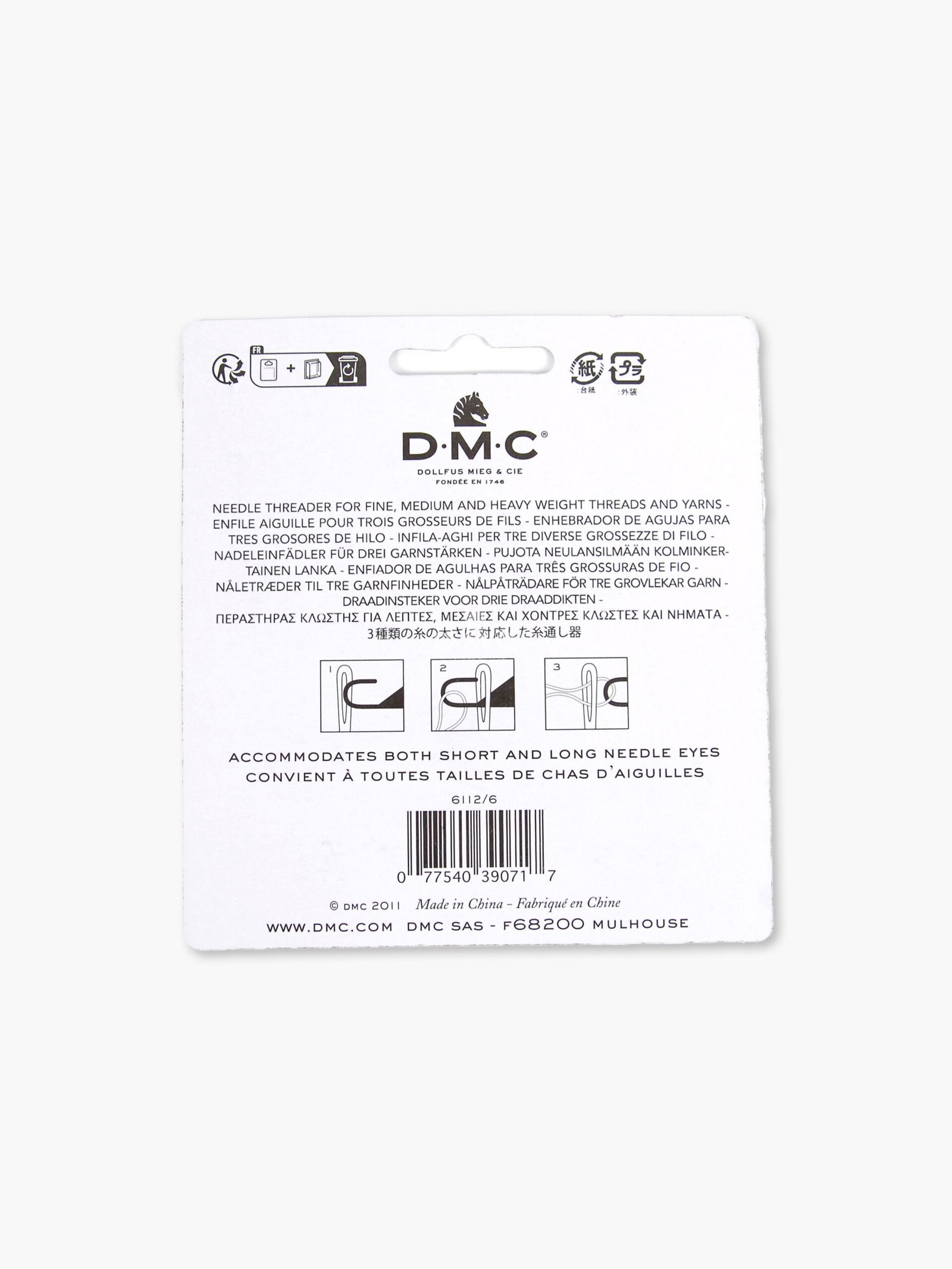 The DMC Enfile-Aiguille 3 in 1 is a practical and versatile tool designed to thread needles quickly, easily, and without frustration. Ideal for sewing, embroidery, and tapestry threads, it is an essential accessory for cross stitch, creative sewing, and needlework enthusiasts.
