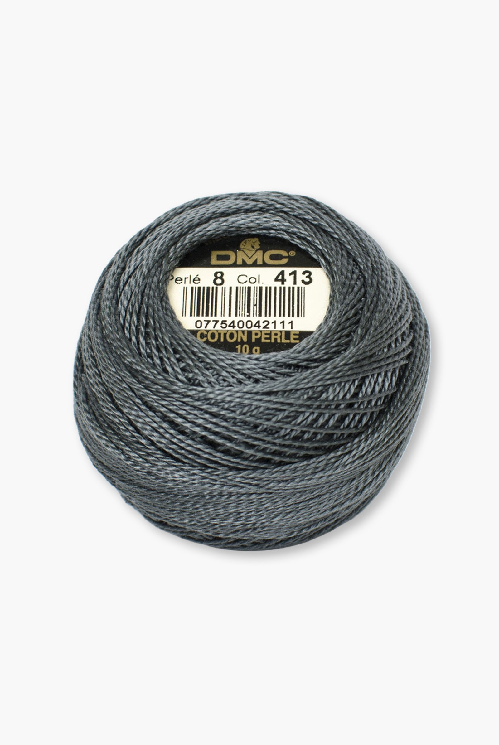 Cotton Perlé No. 8 – Color 413 – 100% Cotton Embroidery Thread – 10 g Cotton Ball – by DMC