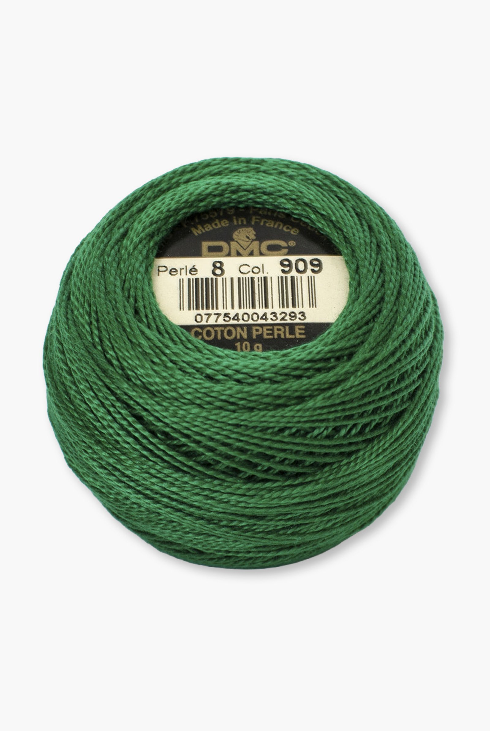 Cotton Perlé No. 8 – Color 909 – 100% Cotton Embroidery Thread – 10 g Cotton Ball – by DMC