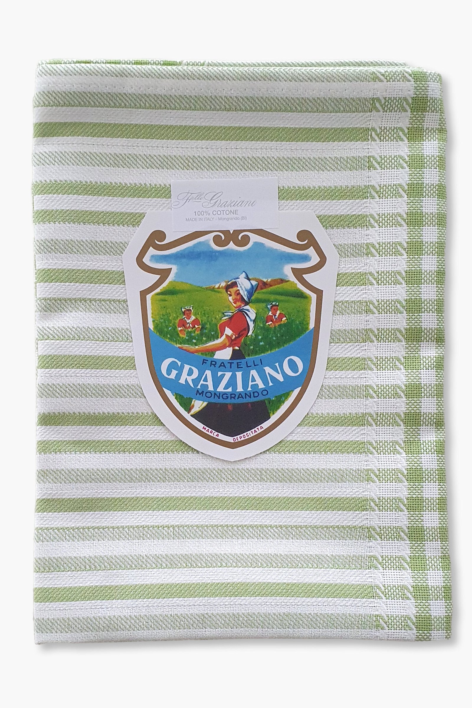 Colonia Striped Kitchen Towel – Green Checked Band for Broderie Suisse – Made in Italy by F.lli Graziano