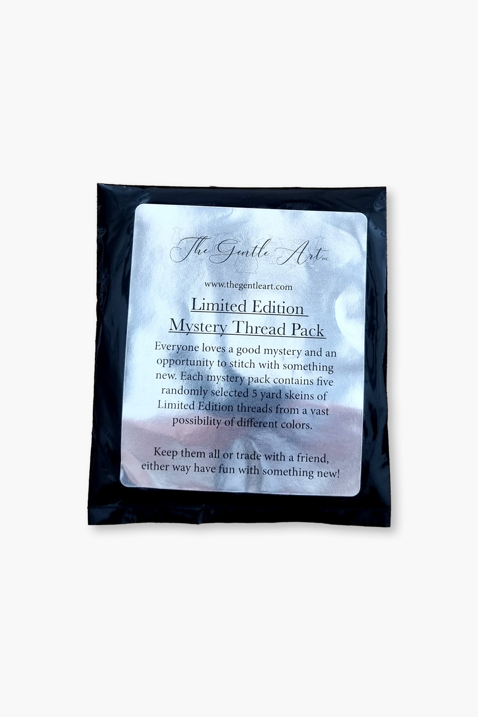 The Mystery Pack by The Gentle Art Sampler Threads is a random selection of hand-dyed skeins, perfect for those who enjoy being inspired by unexpected color combinations. Each pack contains 5 skeins of 5 yards each, randomly selected from the Gentle Art color range.