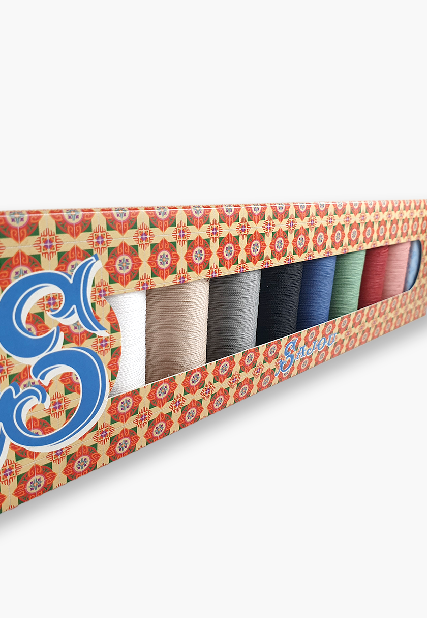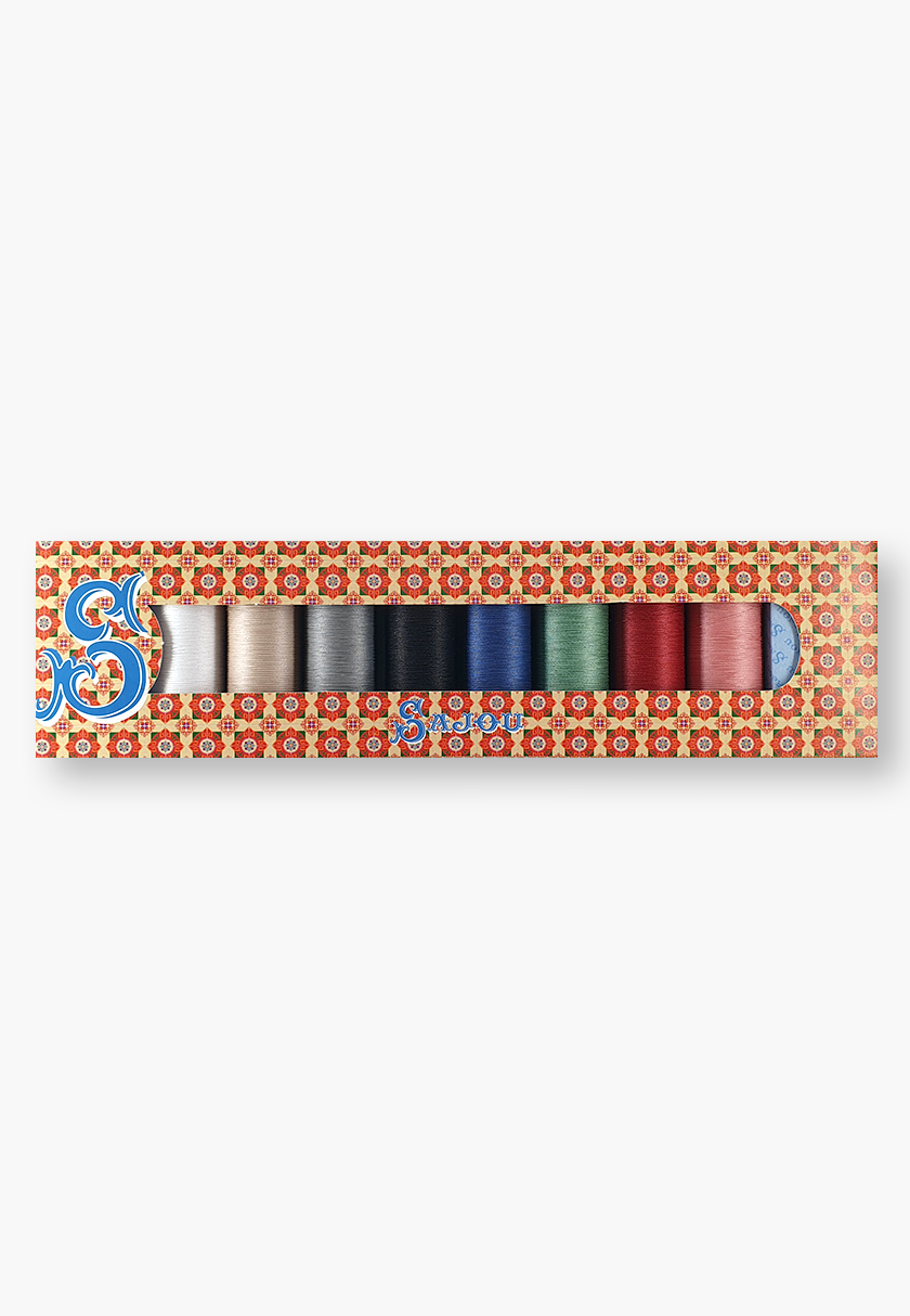 This elegant gift box contains 8 spools of Fil Au Chinois patchwork thread, each 100 metres long, made of 30% cotton and 70% polyester. This selection features an assortment of most popular colours, ideal for patchwork, quilting, and other sewing projects.