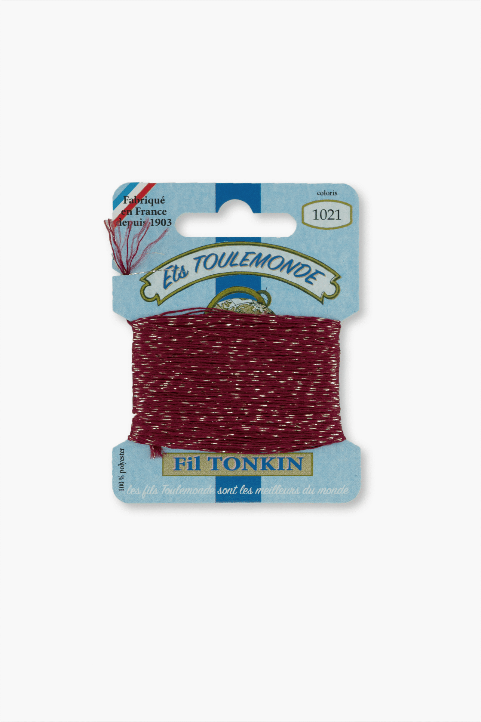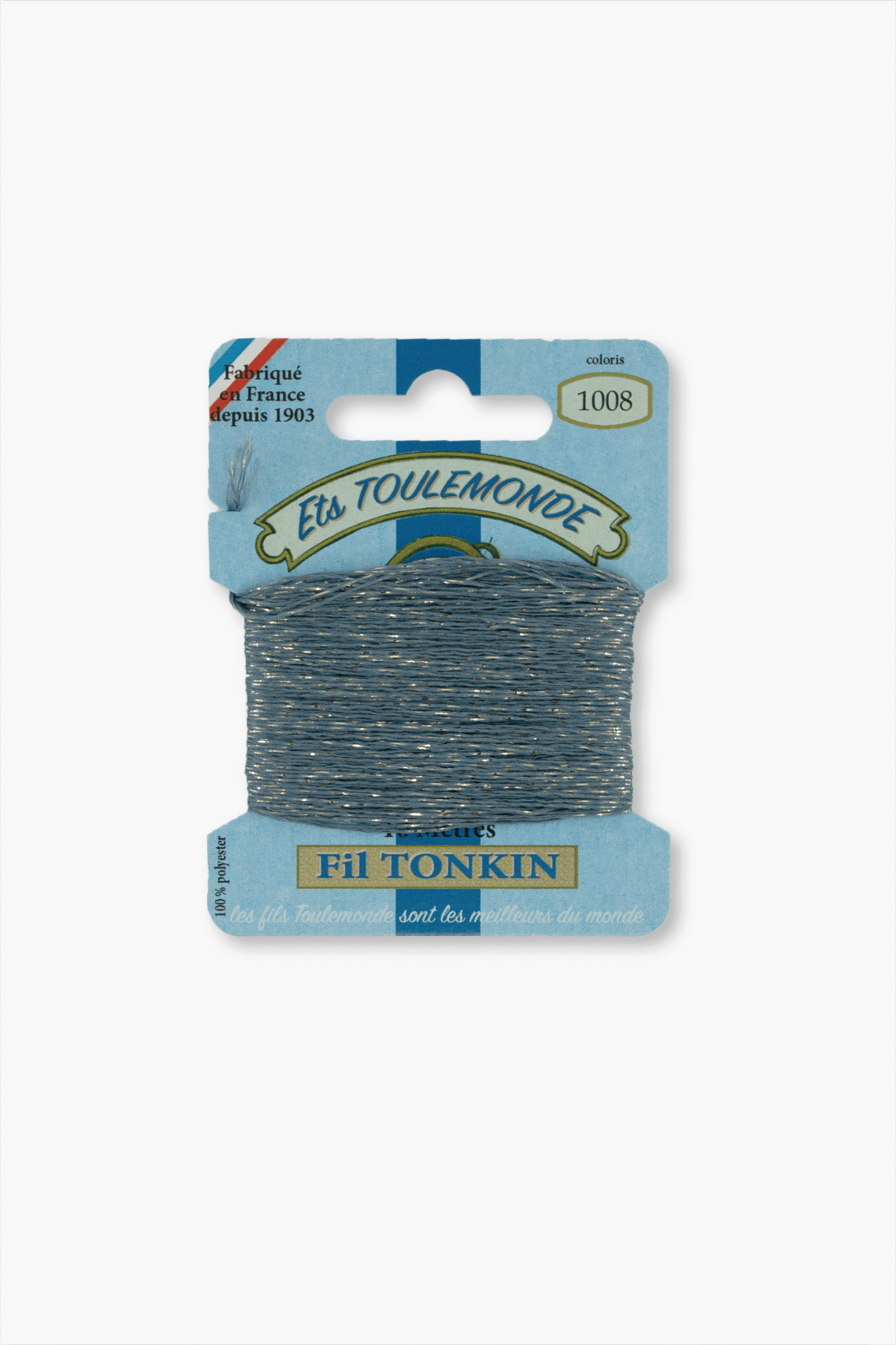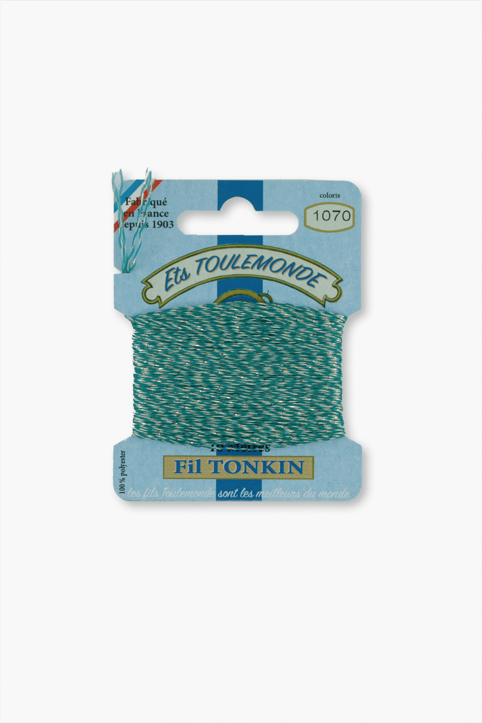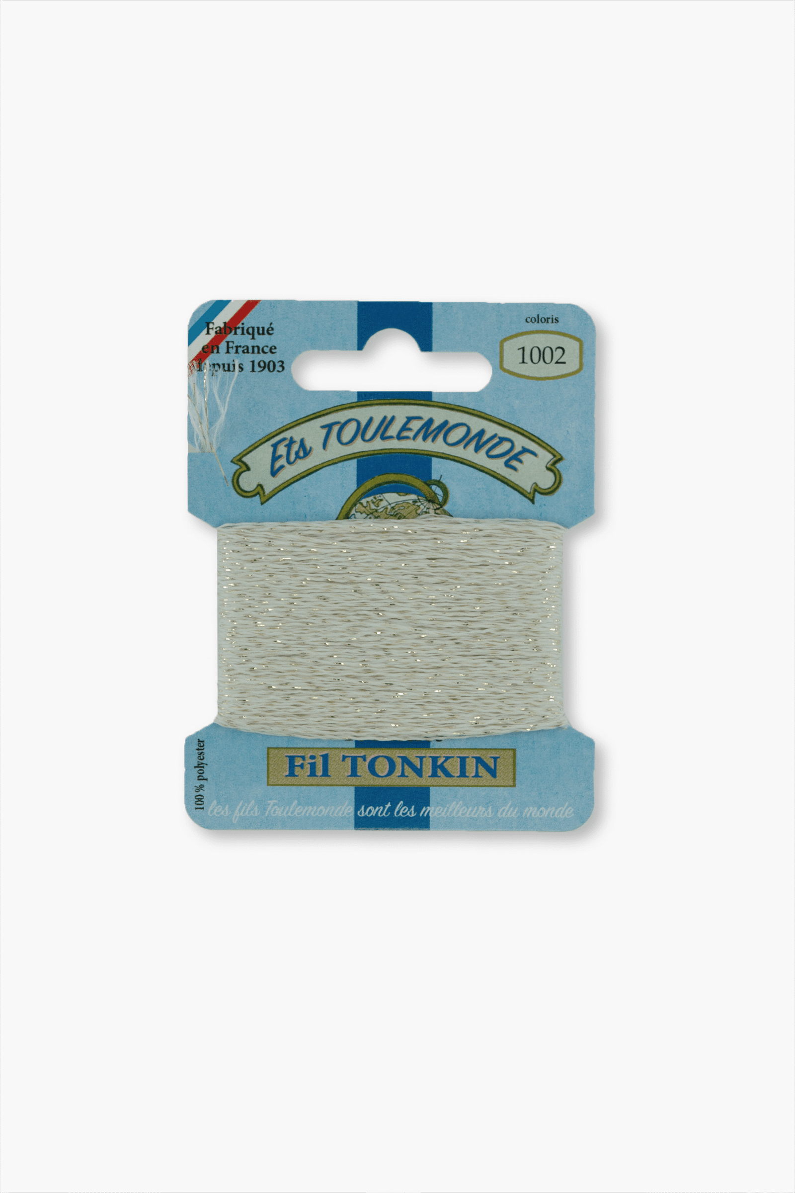 Tonkin is a gimped thread containing a fine lurex strand, adding a discreet yet noticeable sparkle to embroidery. Made of textured polyester, Tonkin has a slightly puffy aspect that gives a beautiful presence on fabric. Unlike other threads with metallic strands, it does not fray while stitching, ensuring a smooth and enjoyable embroidery experience.