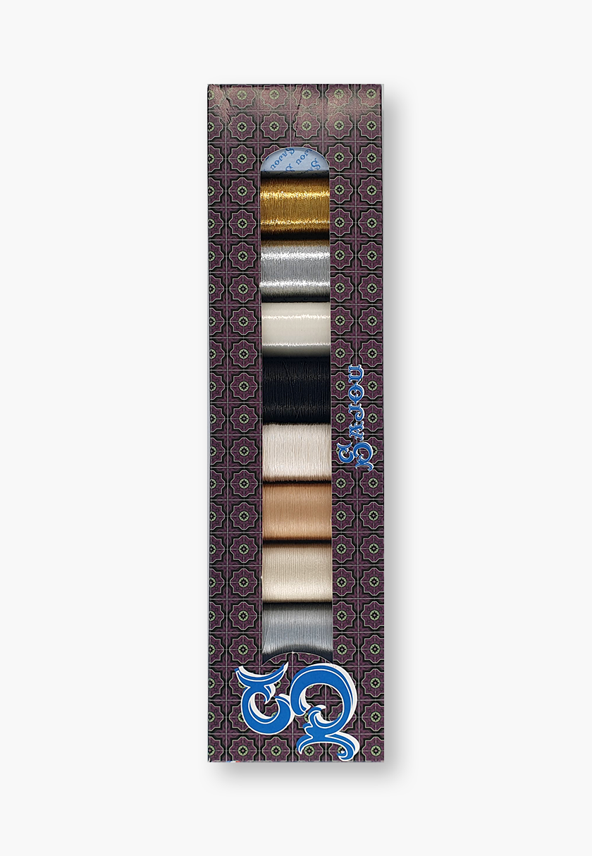 - 2 spools of polyester metallic thread (100 m), colours 122 – Silver and 110 – Old Gold